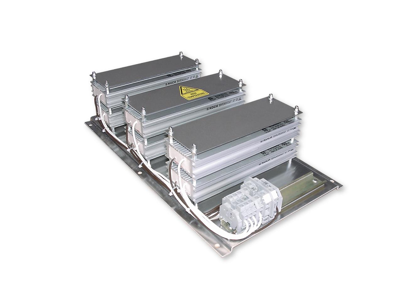 Kurzschlussfester, „eigensicherer“ Widerstand zum Betrieb an Drive Controllern (Bremstransistoren), bestehend aus Einzelwiderstandsmodulen der Serien 500/600/1000 in Kombinatorik verbaut.